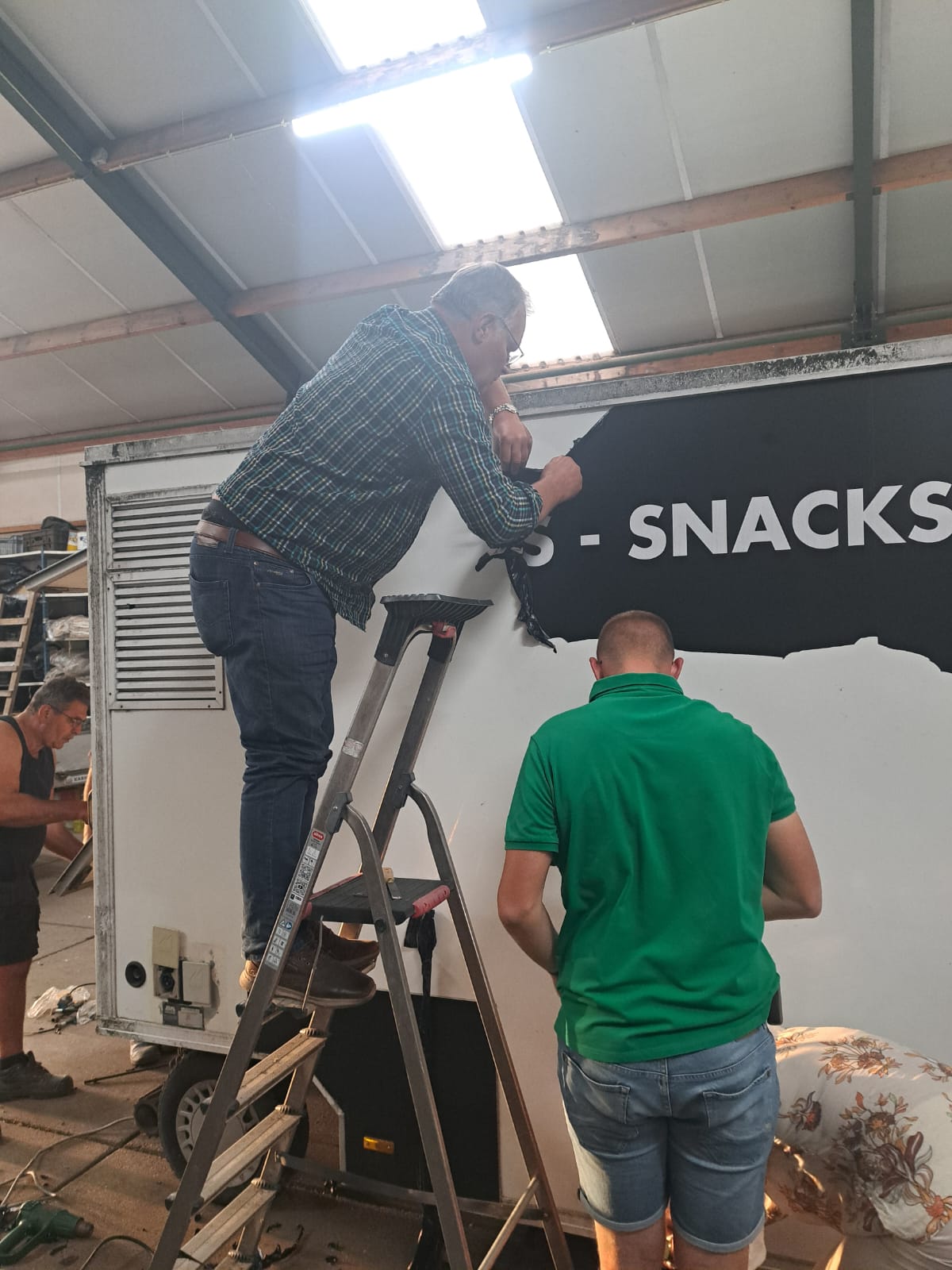 Met veel liefde, inzet en een flinke dosis kluskracht hebben we onze oliebollenkar omgetoverd tot een warme plek waar bakken en verbinden samenkomen. Elke plank, verflaag en schroef brengt ons dichter bij ons doel: mensen blij maken met heerlijke oliebollen voor een goed doel.